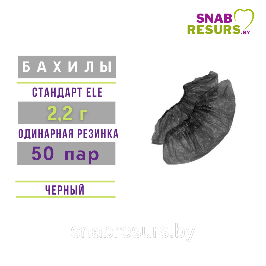 Бахилы п/э Стандарт ELE 2.2 г, 50 пар, черные
